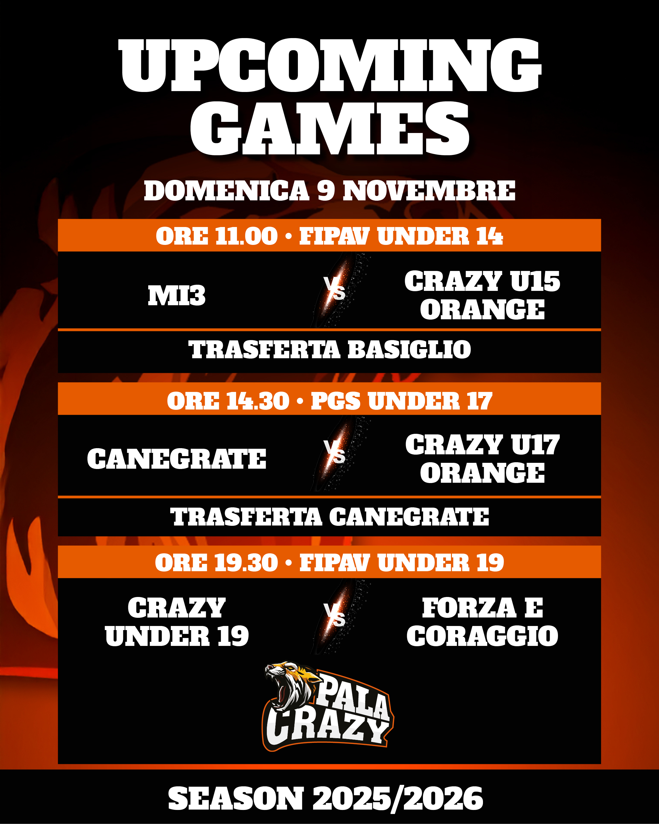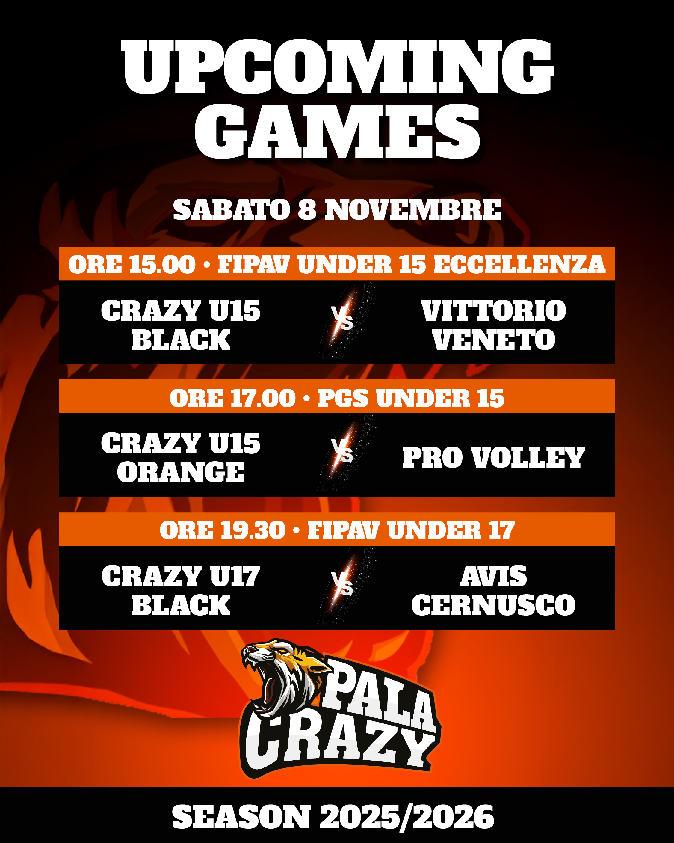 Esordio con il botto per la nostra Prima Divisione Black nel Campionato FIPAV Maschile! Le nostre "Tigri" ruggiscono più forte degli avversari e si impongono con un netto 3-0 (25-16, 25-14, 25-22) sui Tiger Volley Bernareggio al PalaCrazy, conquistando i primi tre punti del cammino che punta dritto alla Serie D.